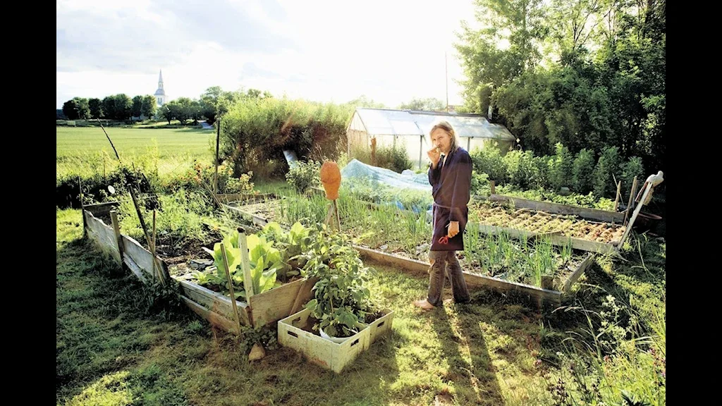 Visesangeren Stefan Sundström i sin egen kjøkkenhage. I mars opptrer han i Lillesand